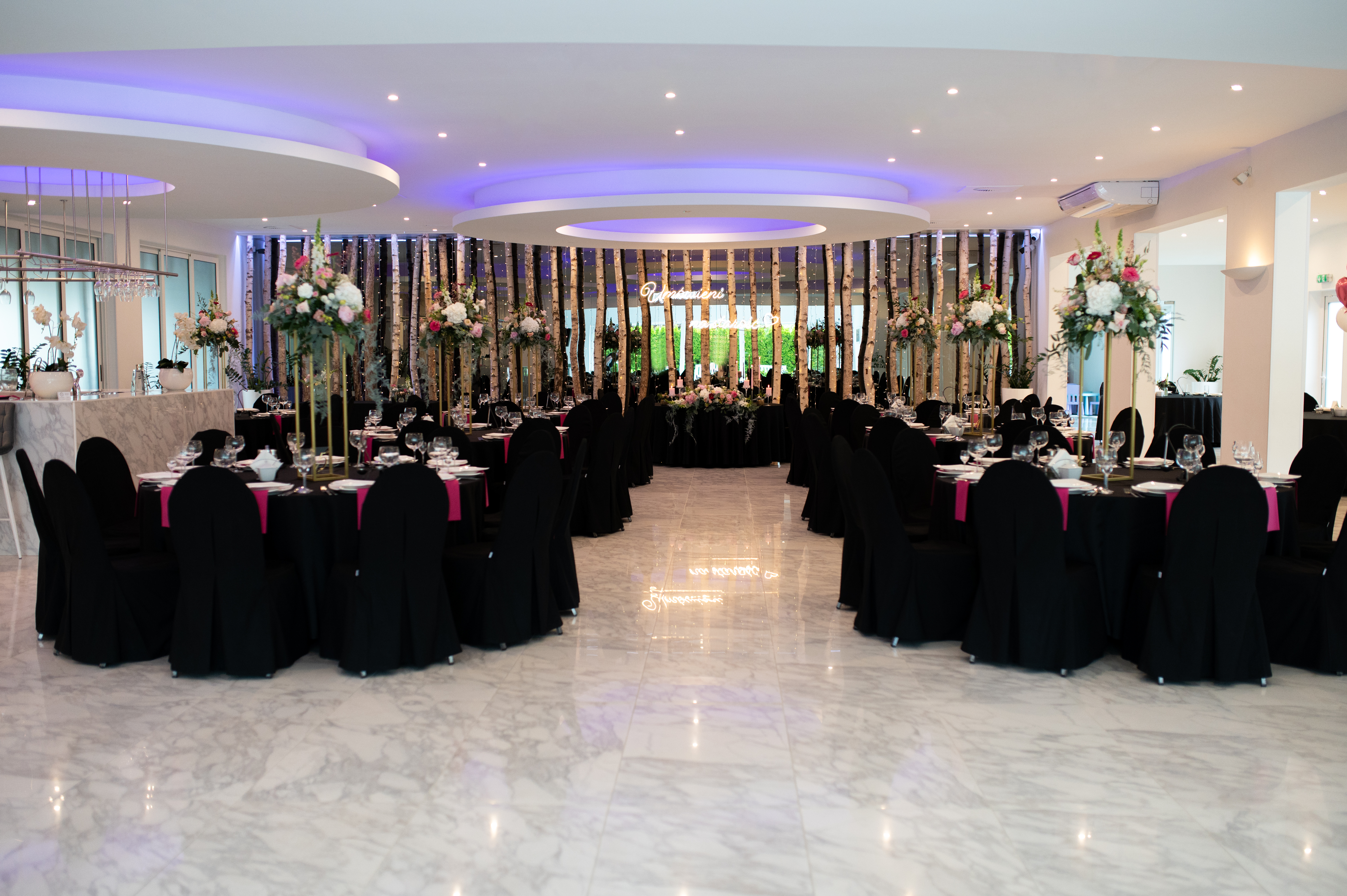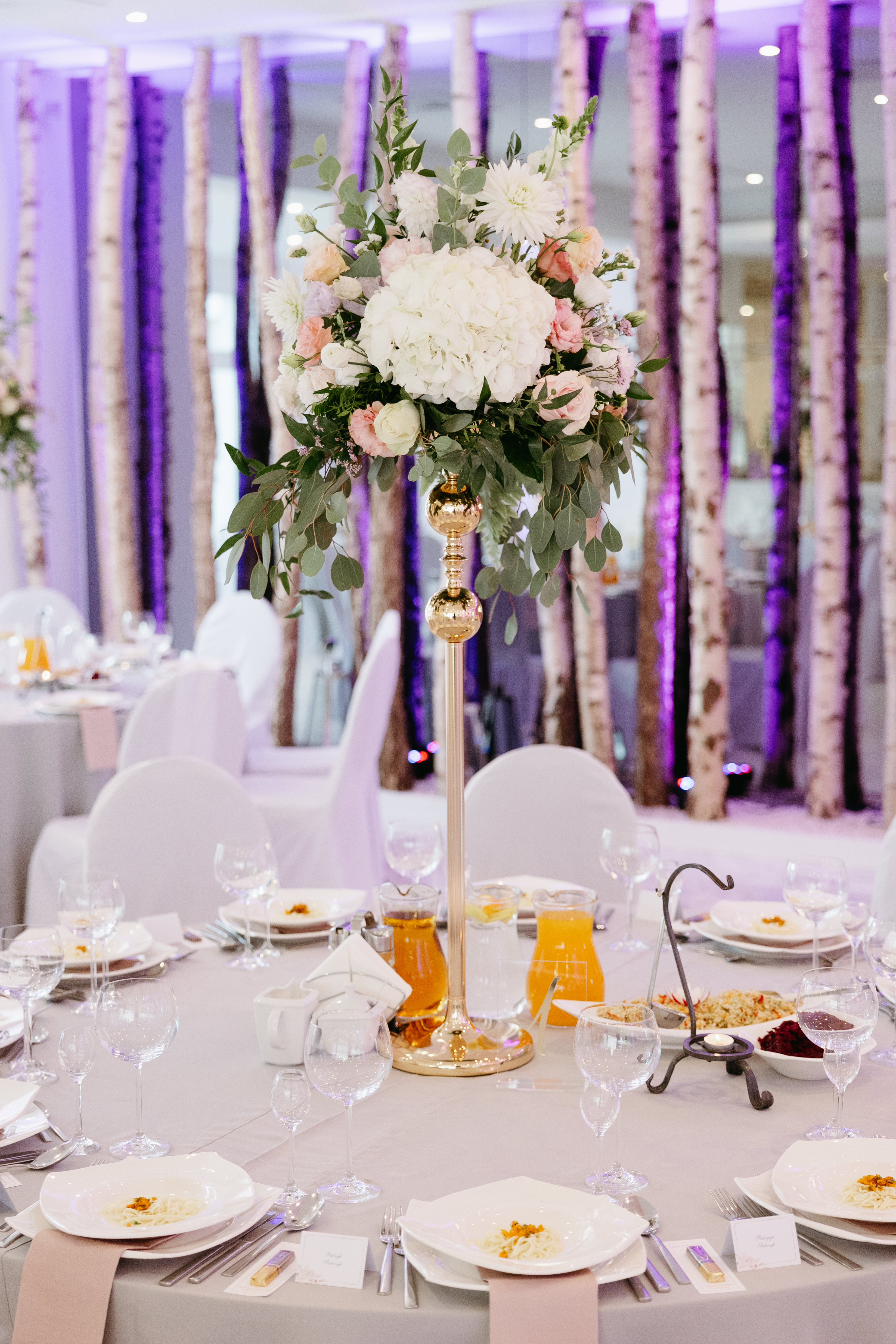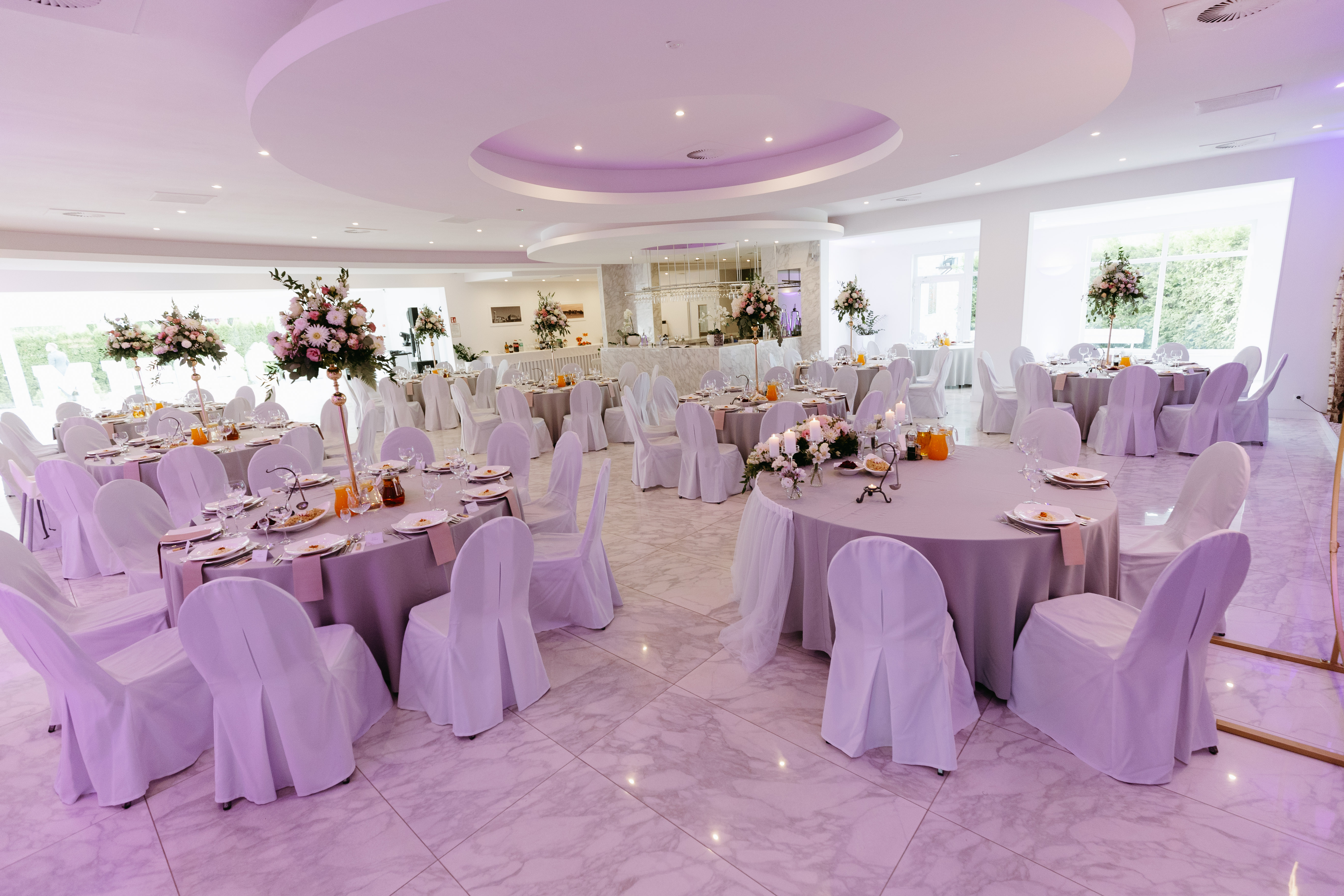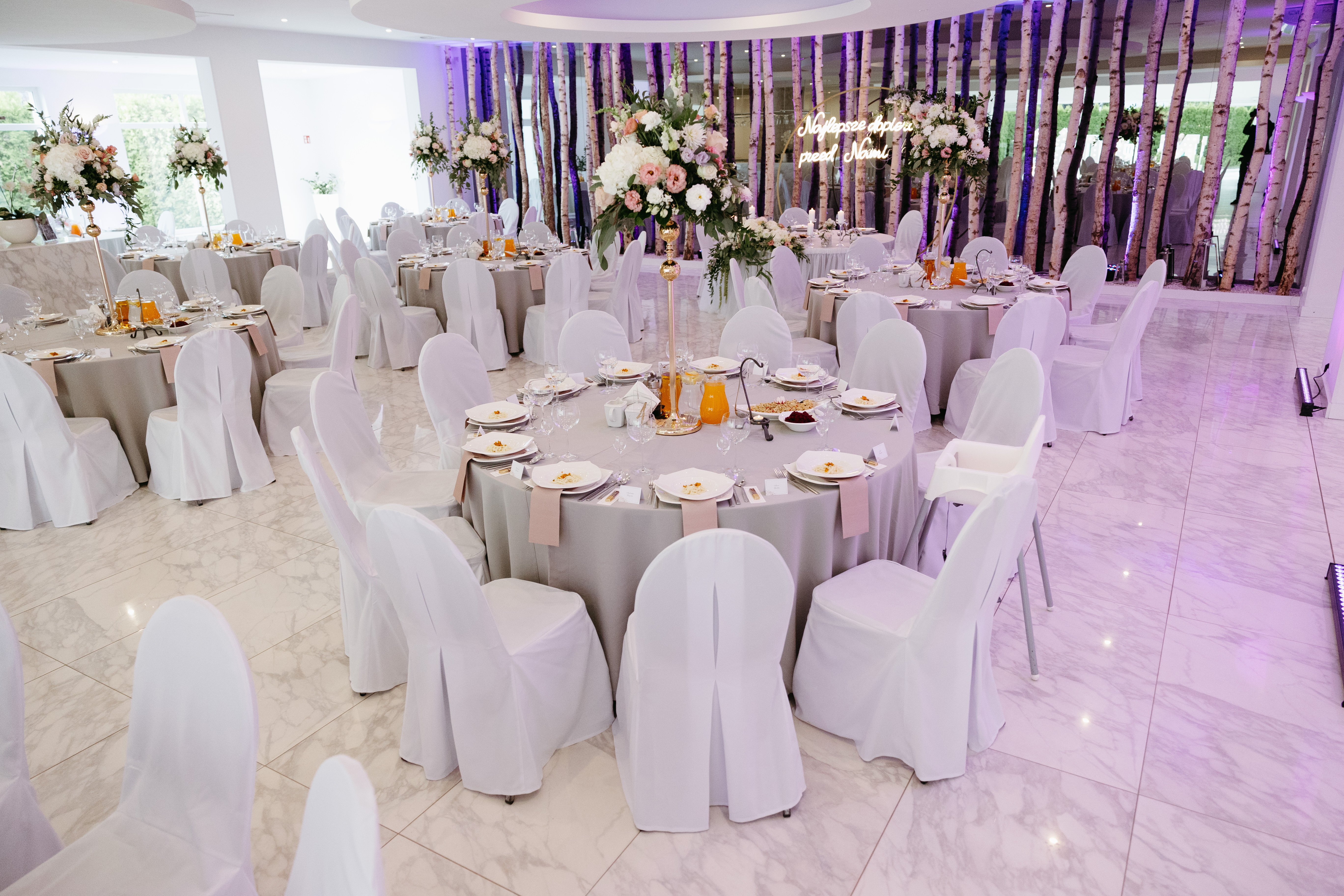 Marmurowa podłoga, okrągłe sufity z podświetleniem i imponująca ściana z brzozowych pni tworzą wnętrze, które robi wrażenie już od pierwszego spojrzenia. Wnętrze można aranżować w różnych stylach – od klasycznego i romantycznego po nowoczesny i tematyczny. Sala zachwyca zarówno w dekoracjach ślubnych, jak i wieczornych stylizacjach na 18-stki czy gale.
