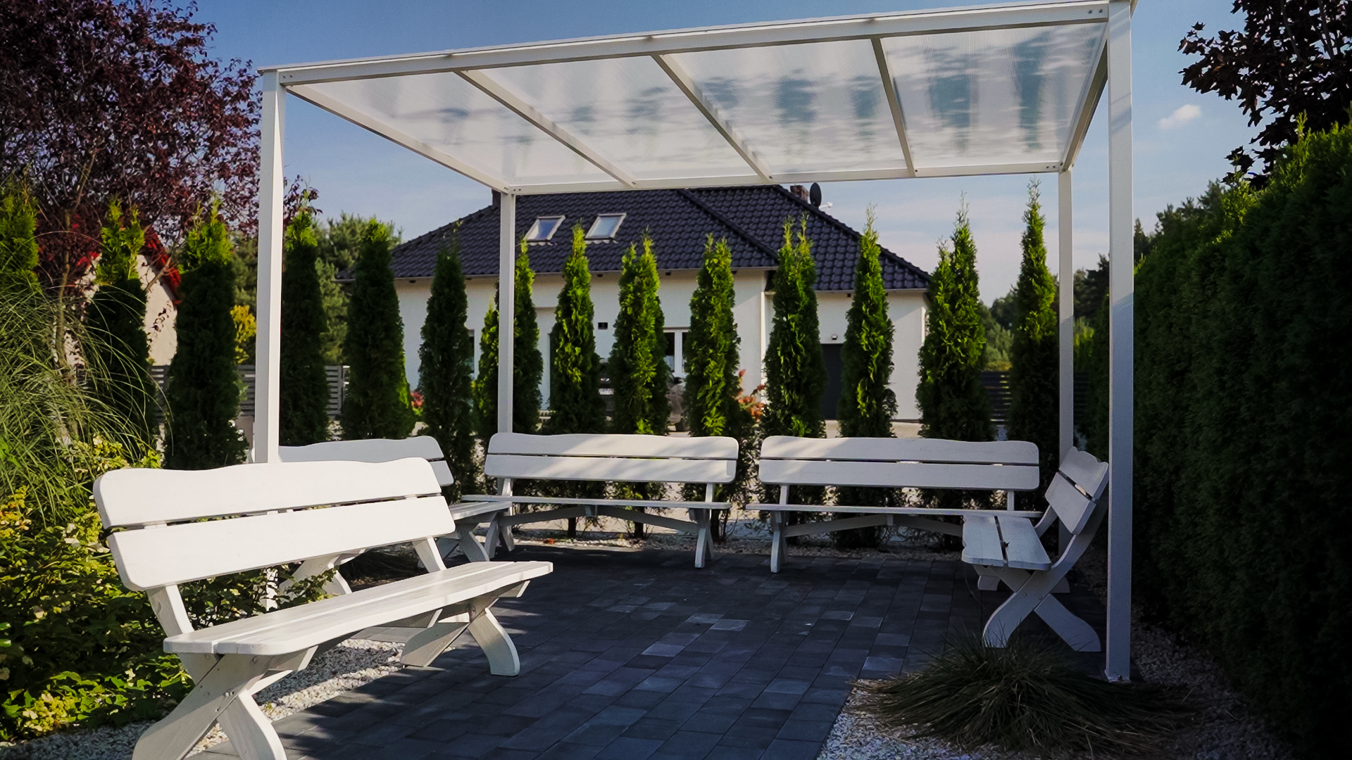 Bezpośrednio z sali prowadzi wyjście na przeszklone patio, które pełni funkcję powitalną – idealne miejsce na tablicę gości, fotobudkę 360°, prosecco bar czy tradycyjne powitanie chlebem i solą. Tuż obok znajduje się strefa chillout w ogrodzie – cicha przestrzeń w zieleni, idealna na chwilę wytchnienia w trakcie przyjęcia