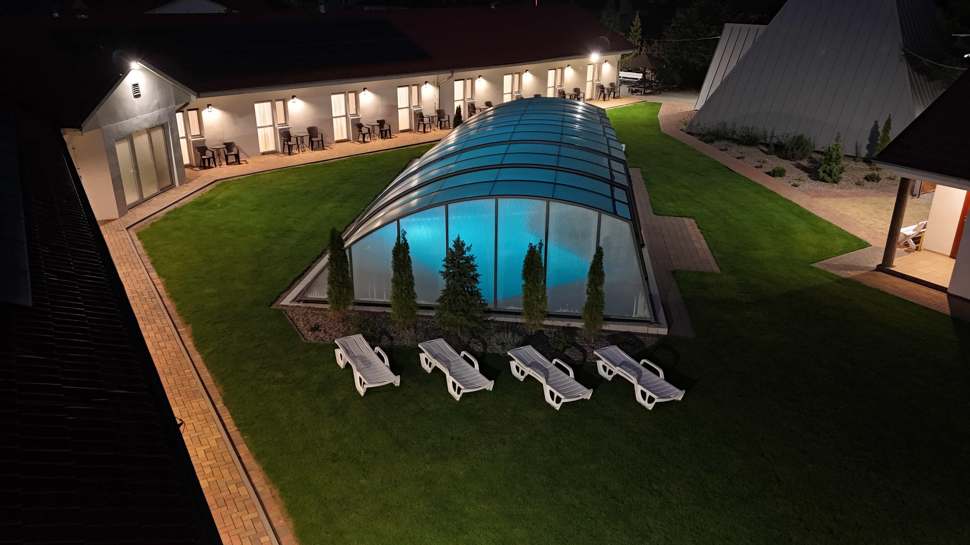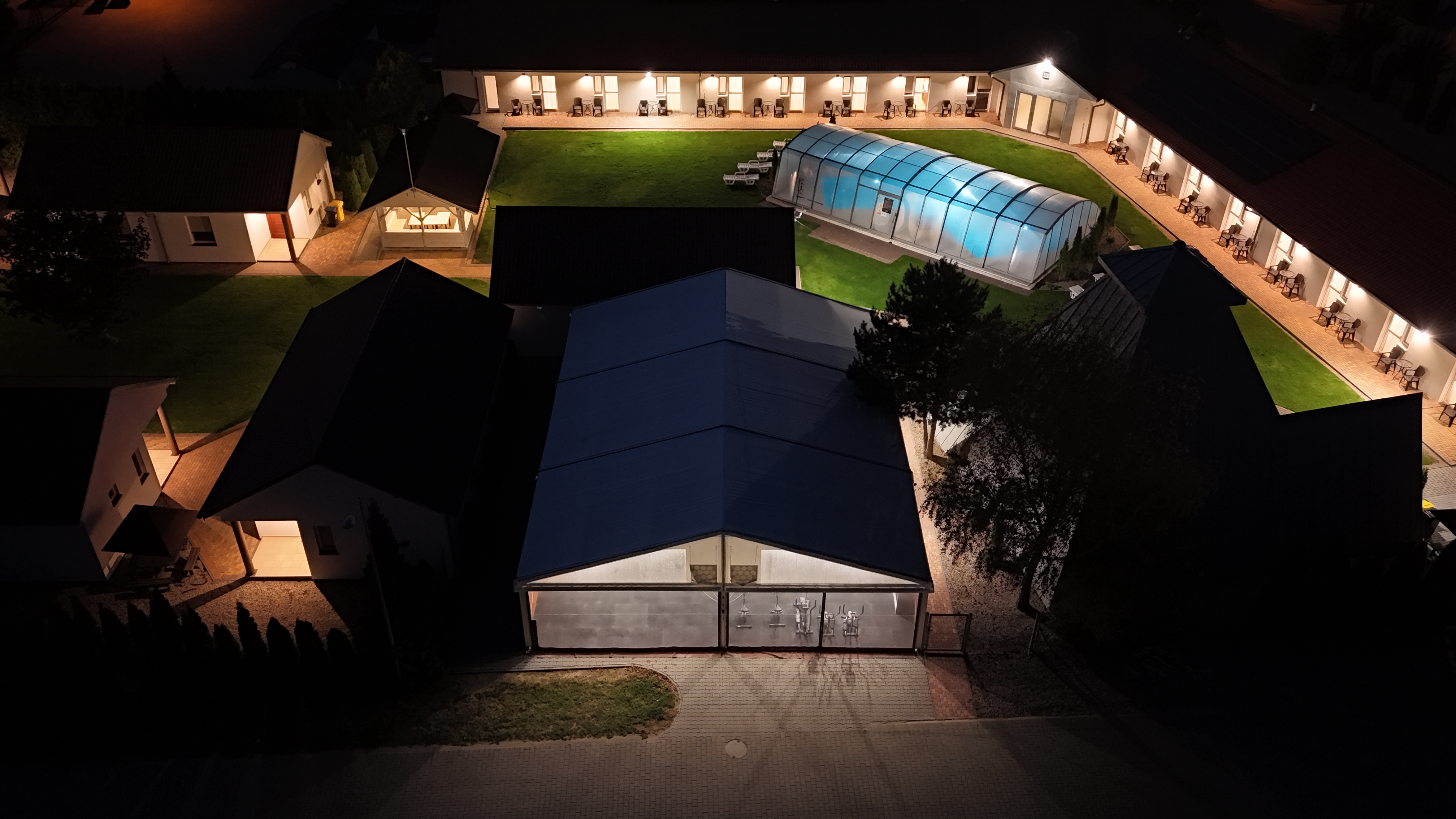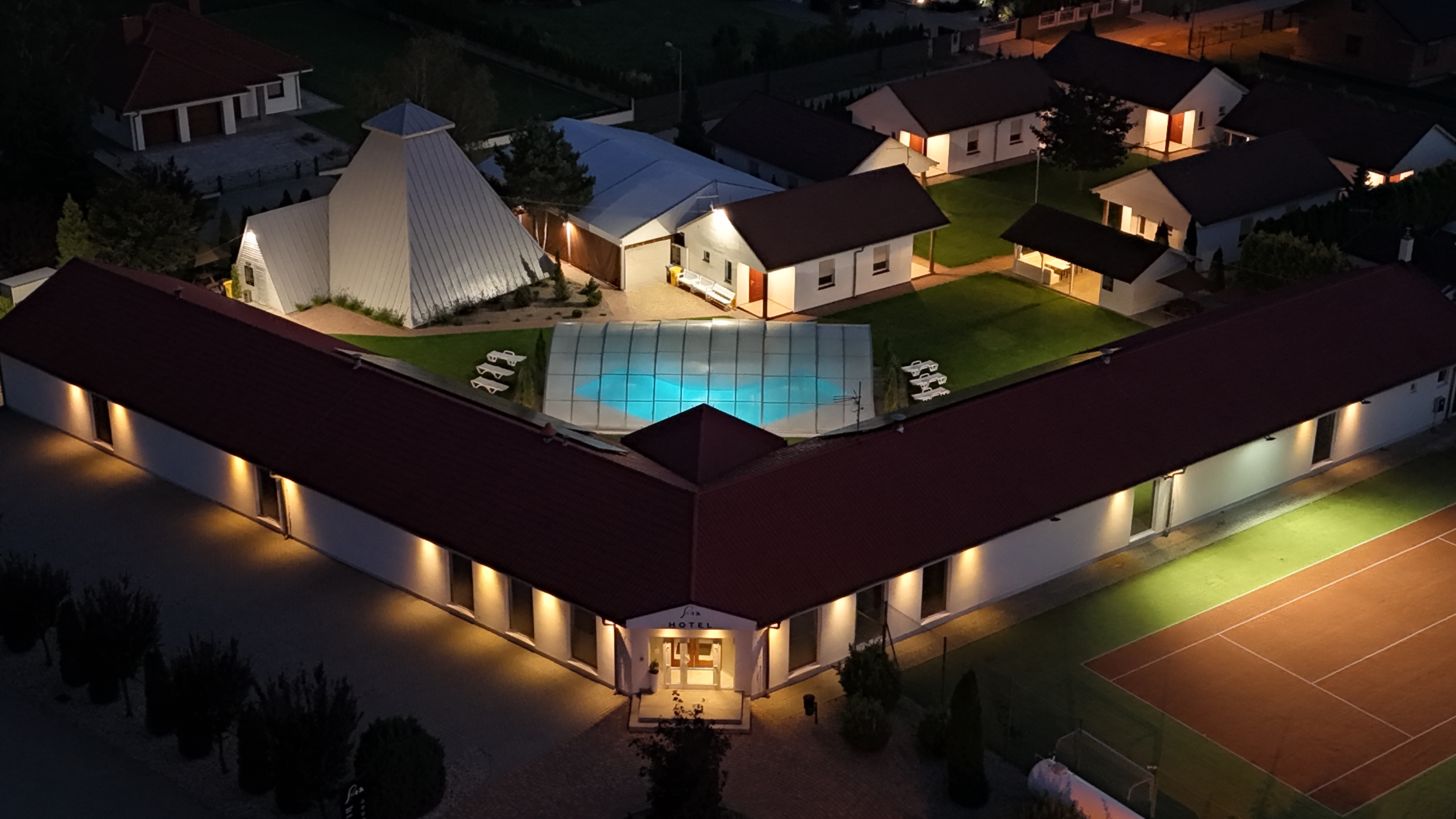 W Rueda oferujemy zróżnicowane formy noclegu – od przytulnych pokoi hotelowych, przez przestronny pokój typu studio, po pokoje rodzinne 2×2 i domek rodzinny z aneksem. Całość w ogrodzonej, zielonej części kompleksu, z wygodnym dostępem do zadaszonego basenu zewnętrznego.